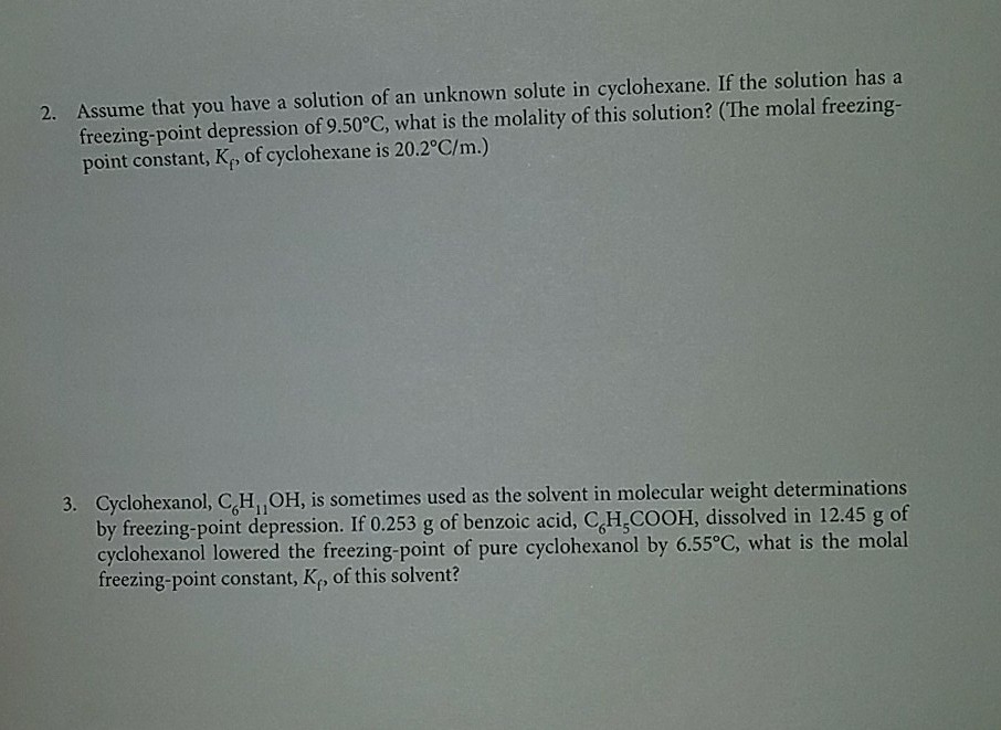 Assume That You Have A Solution Of An Unknown Solute In Cyclohexane