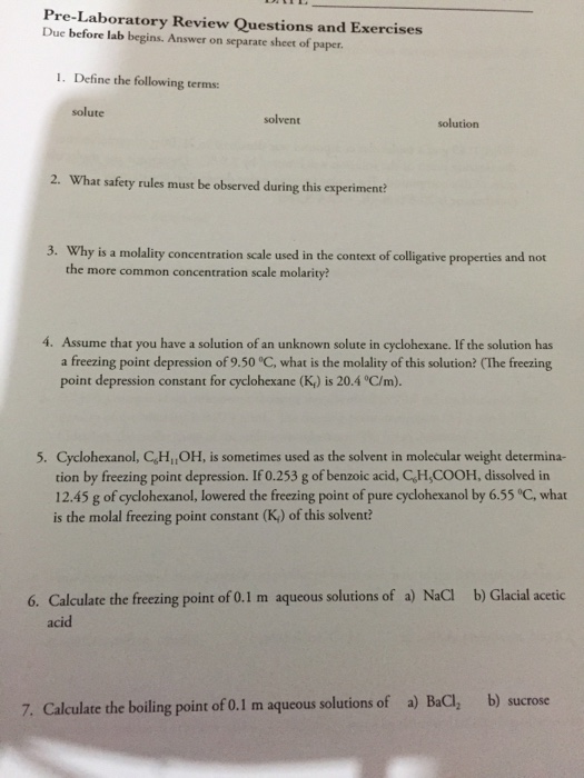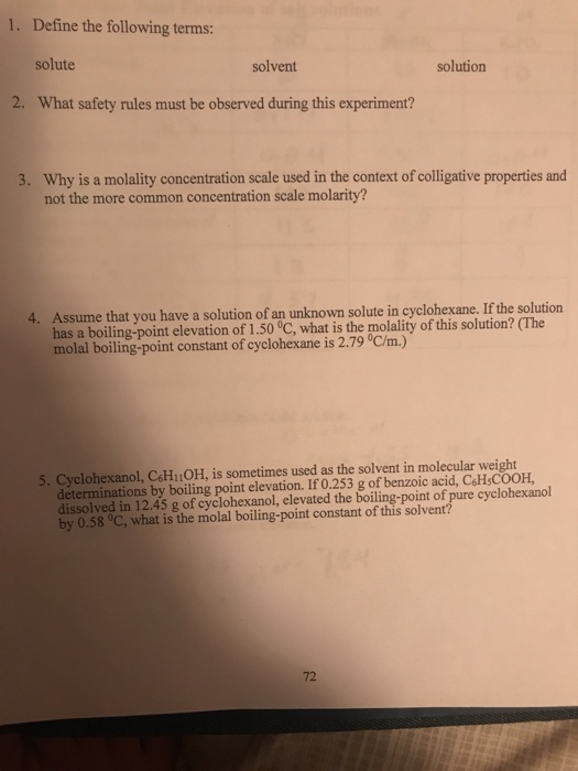 Solved: 1. Define The Following Terms: Solute Solvent Solu... | Chegg.com