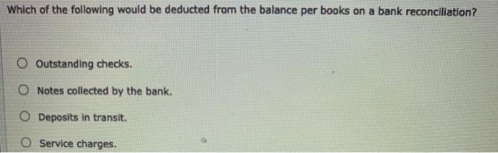 Which Of The Following Would Be Deducted From The Balance Per Books On A Bank Reconciliation?